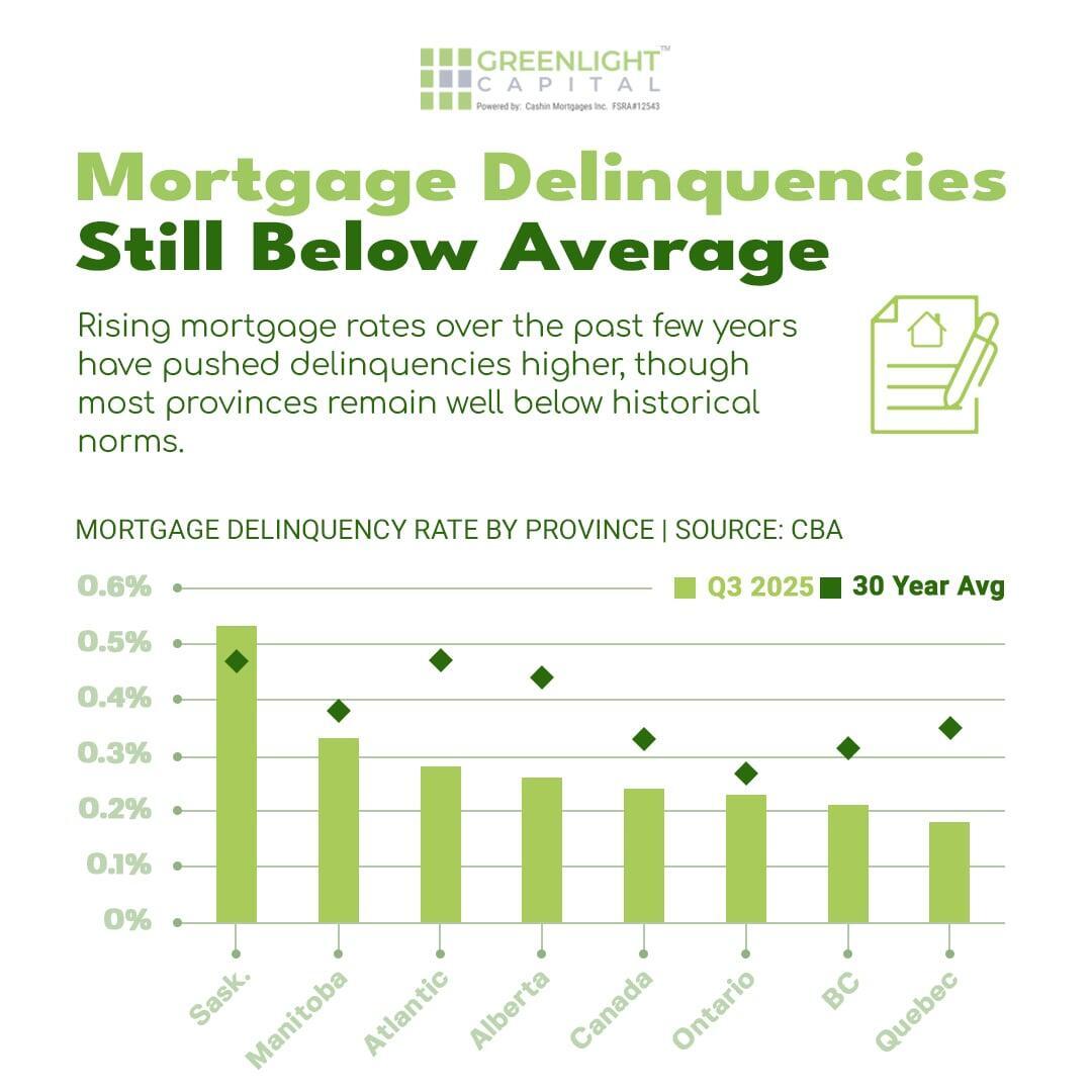 While delinquencies have edged up due to rate pressures, most provinces still sit below historical norms.
