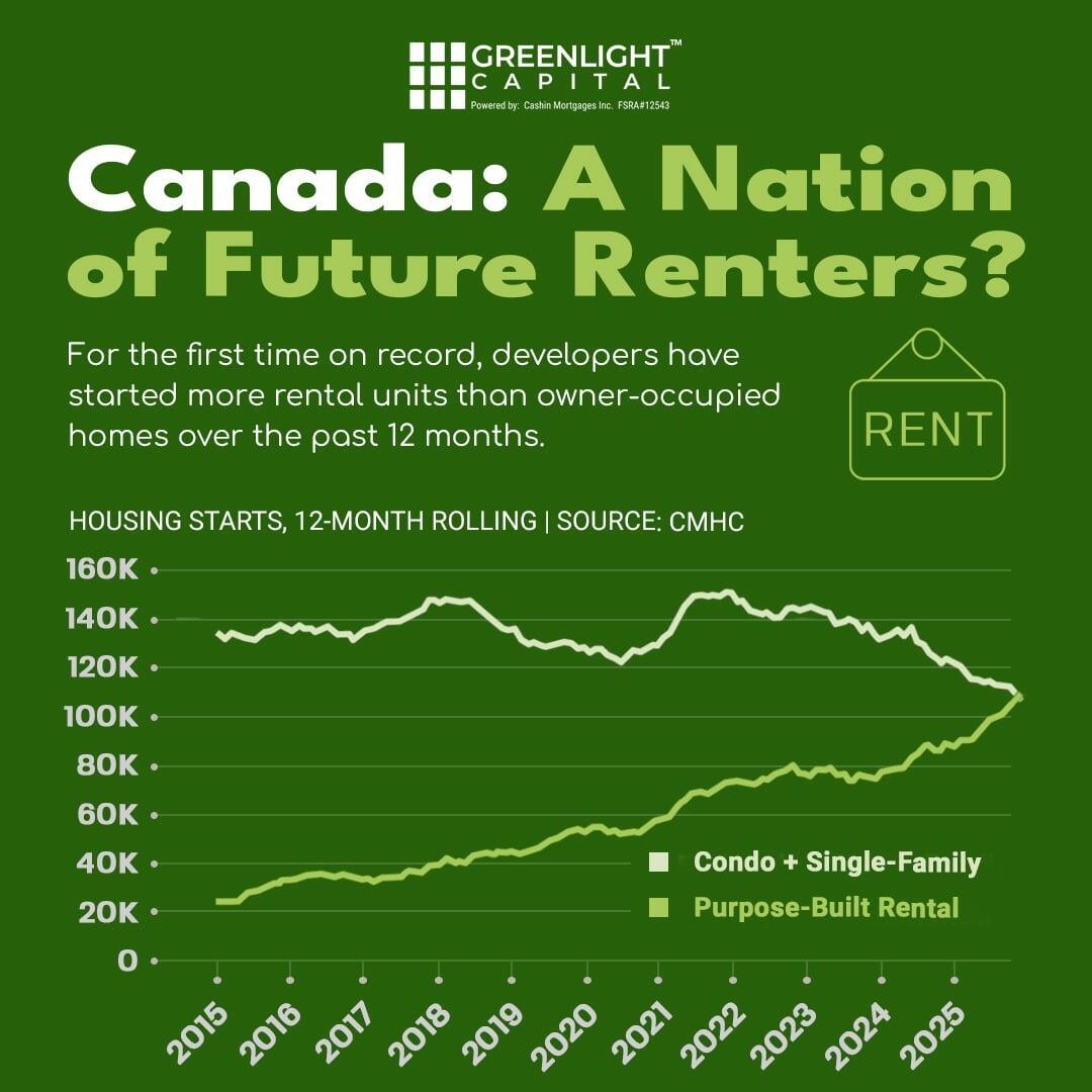 For the first time on record, developers have started more rental units than owner-occupied homes over the past 12 months. This shift reflects affordability challenges for buyers and a growing demand for rental housing a trend investors should watch closely.