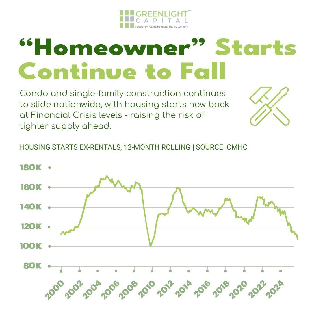 New home construction is slowing. Condo and single-family housing starts are now near levels last seen during the global financial crisis. Fewer new homes could mean tighter supply ahead especially in key markets where demand remains strong.