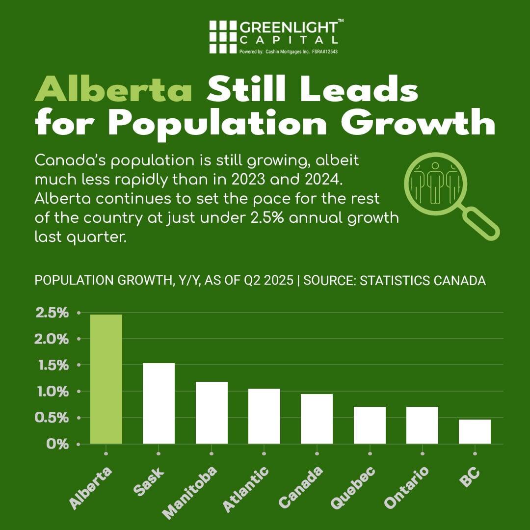 Canada’s population continues to grow, though at a slower pace than in 2023 and 2024. Alberta is leading the way with 2.5% annual growth last quarter, driving strong housing demand and creating potential opportunities for investors in the region.